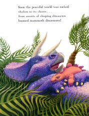 “Kelly DiPucchio’s fun and boisterous take on a page out of history is brought to life in Ponder Goembel’s colorful, fantastic world of flying pterodactyls and rumbling brontosauruses” — Editor“Relates the earth-changing consequences of millions of nights of raucoussnoring by sleeping dinosaurs.” — from the book’s credit page “Along with proposing a novel theory of plate tectonics, this poke at the past will produce from children the same sort of Tyrano-toots as Jane Yolen’s How Do Dinosaurs Say Good Night?(2000).” — Kirkus Reviews, April 1, 2005 “The verse flows smoothly and contains some clever wordplay, but it is Goembel’s art that steals the show.” — Grace Oliff, School Library Journal, May 2005 “Puns, bouncy verse, and vibrant art combine for a fun read-aloud.” — Booklist  |  |  | “DINOSNORES started with just a title. One night, my oldest daughter commented, “Daddy has dinosnores!” I thought ‘dinosnores’ would make a great title for a picture book. After doing some research, I was very surprised to find out that there were no books on the market using that title. Immediately, I knew that I would write the book. It took me a couple of weeks before I came up with the skewed theory that snoring dinosaurs caused the supercontinent to break and split apart, but once I did, the story took off and essentially wrote itself. ’ — Kelly DiPucchio Ponder this: “When working on this story I thought of the many humorous contrasts that could be drawn. I envisioned big and small creatures, sharp teeth and happy relaxed faces, scale covered creatures and soft comforting toys, and most of all, gigantic earth-shattering snores that disrupted the quiet world of mammals.” — Ponder Goembel | |  “...from snouts of sleeping dinosaurs boomed mammoth dinosnores!” — Kelly DiPucchio. | For more about dinosaurs and snoring, check out the Links page, or take a look at the National Museum of Natural History’s page about dinosaurs. |