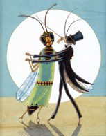“The insect ball has attracted the crème de la crème of bugs: Queen Bee and her royal hive, lice waltzers, cockroach bartenders, gnat doormen, and of course Mr. Mosquito, a dapper gent in a tuxedo and top hat. Puns and double entendres dominate the party chitchat: Mosquito recalls attending a flea market; later, an attractive wasp compliments his anatomy, saying, “I daresay your stinger is quite a humdinger.” Near-tragedy strikes when “BIG FEET” (otherwise known as a bear) threatens to flatten them, but Mosquito and his kin save the day by deploying their ranks, shouting, “Are you ready? Get set. Go annoy!!!!” Goembel's spidery art-work cranks up the magnification...the rhymes are clever and the big ending-which reveals that the entire thing is happening beneath a kid's sock-is an amusing surprise” — Daniel Kraus, Booklist  “The abundant and rhyming text is only half of this story; the illustrations tell the rest.” — Catherine Callegari, School Library Journal |