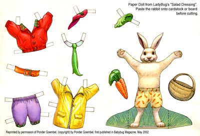 Rabbit Goes for a Walk These pictures first appeared in Ladybug Magazine for children. You have permission to copy them and make a paper doll for fun only. They are not to be for sale or other use.