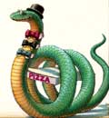 “In this simple, funny story, a young girl pretends what she would say to a variety of creatures, from a dinosaur to a snake, delivering pizza to her door.”